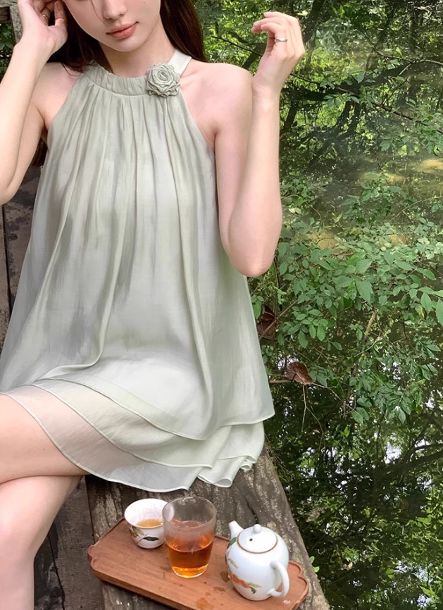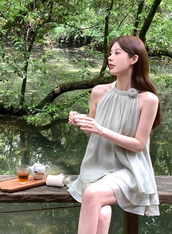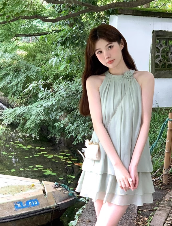 Jupe courte décontractée plissée à volants roses et dos nu pour femme, tenue de vacances d'été D1937