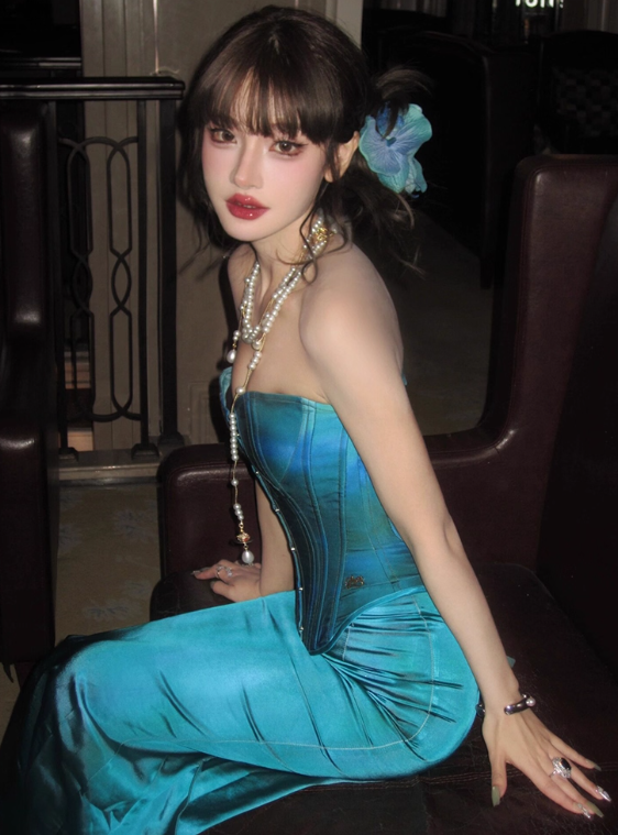 Robe de bal brillante à paillettes et col en cœur, robe de soirée sirène, robe de gala, robe de fête d'anniversaire, D3415
