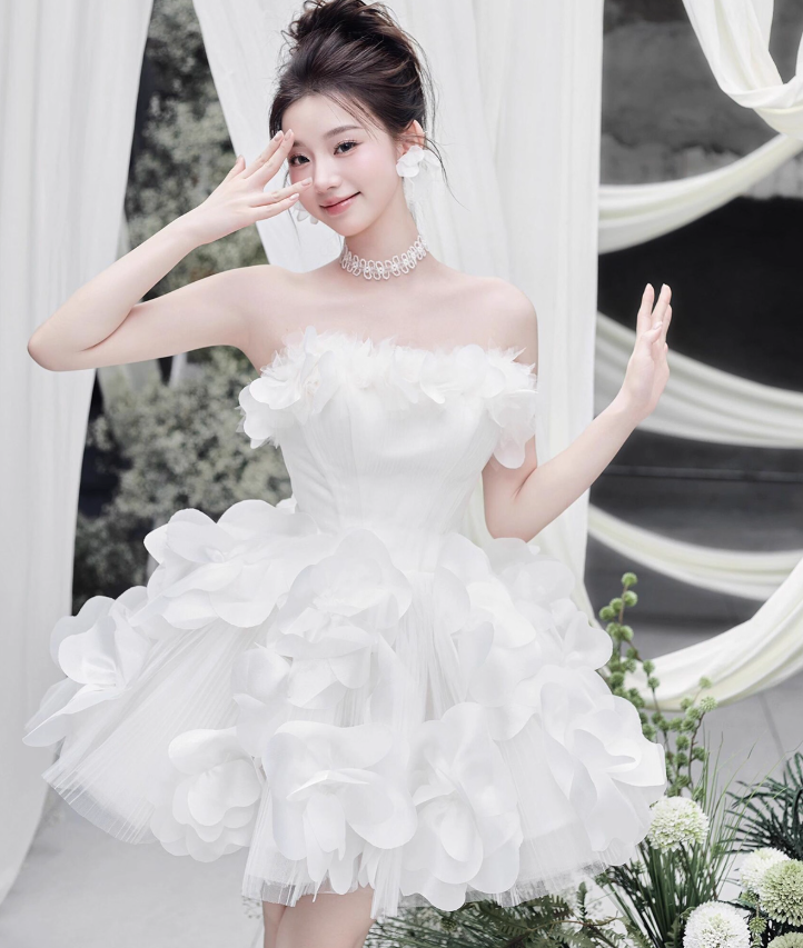 Robe de bal courte bustier blanche, tenue de rentrée scolaire, robe de bal, robe de Quinceanera, robe de soirée, D2195