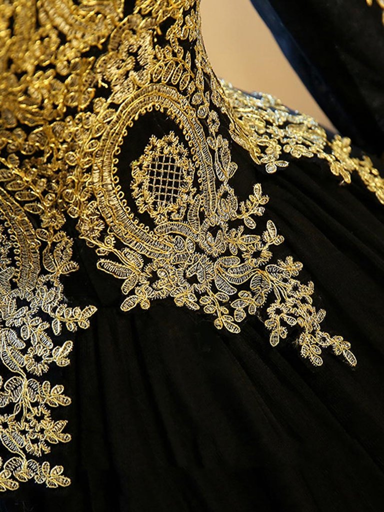 Robe de bal noire à manches longues, robe de bal princesse en tulle avec appliques en dentelle M1503