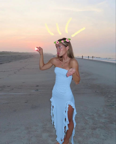 Robe de soirée longue noire bustier fourreau à volants, robe d'invitée de mariage, D290