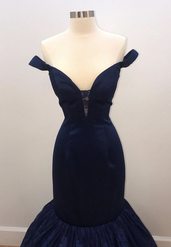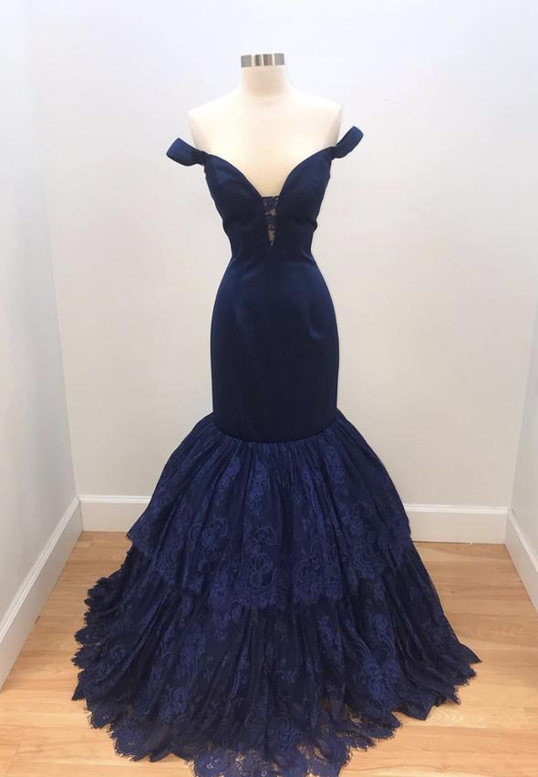 Robe de soirée sirène longue en dentelle bleue M856