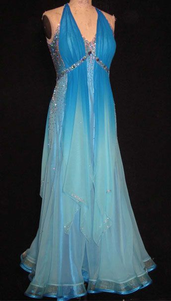 Robe de soirée longue en mousseline de soie bleu dégradé, col licou, perles, style vintage, D580