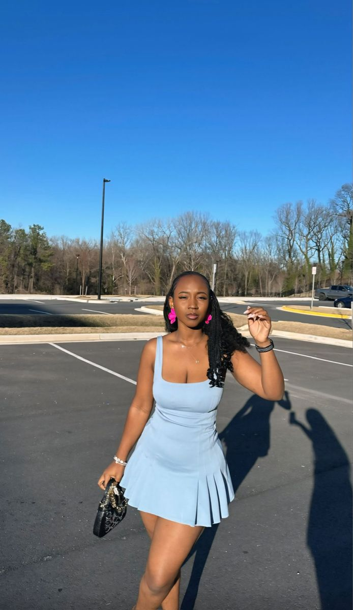 Robe de soirée courte trapèze à bretelles bleues, jolie robe de soirée, D1312