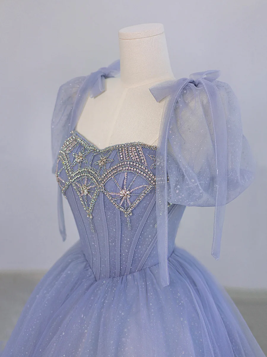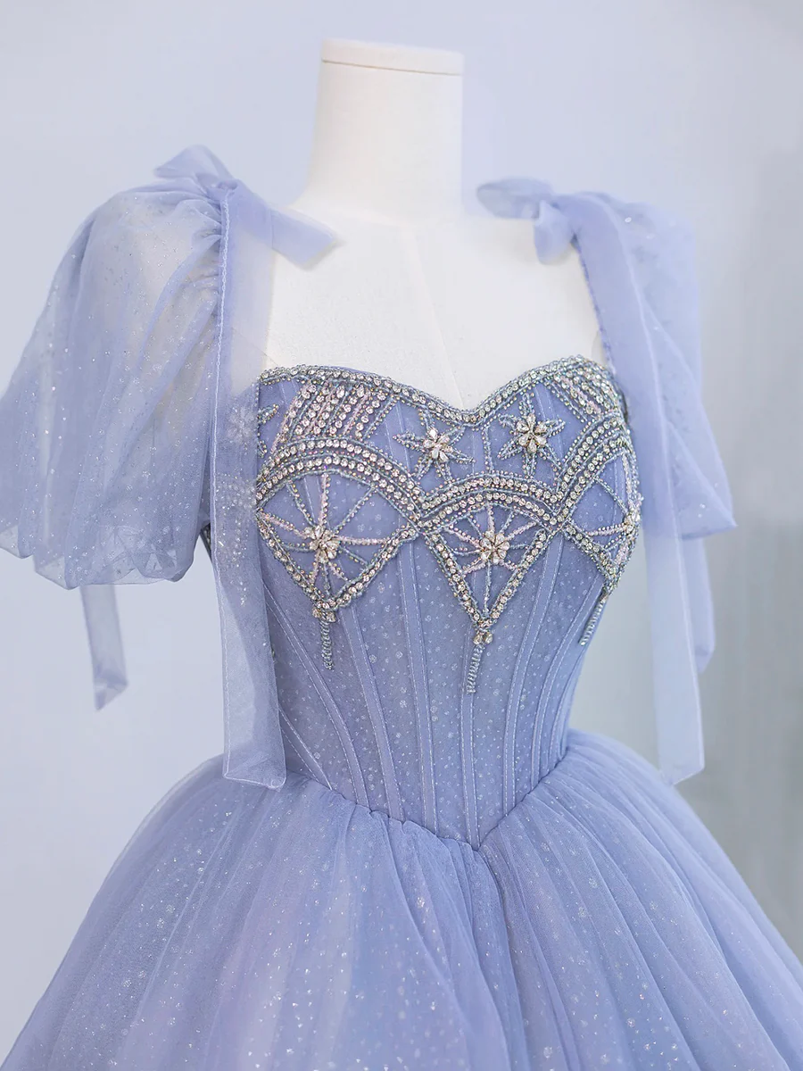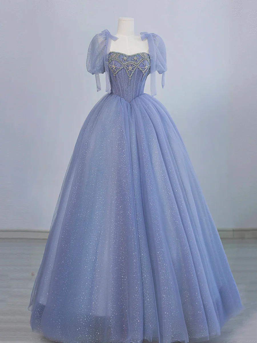 Robe de bal en tulle et perles, coupe trapèze, manches courtes, robe de soirée MD7201