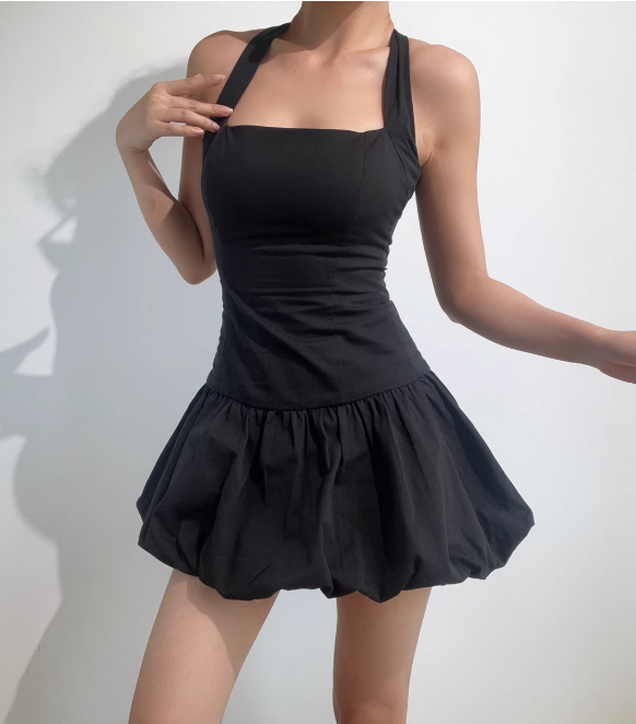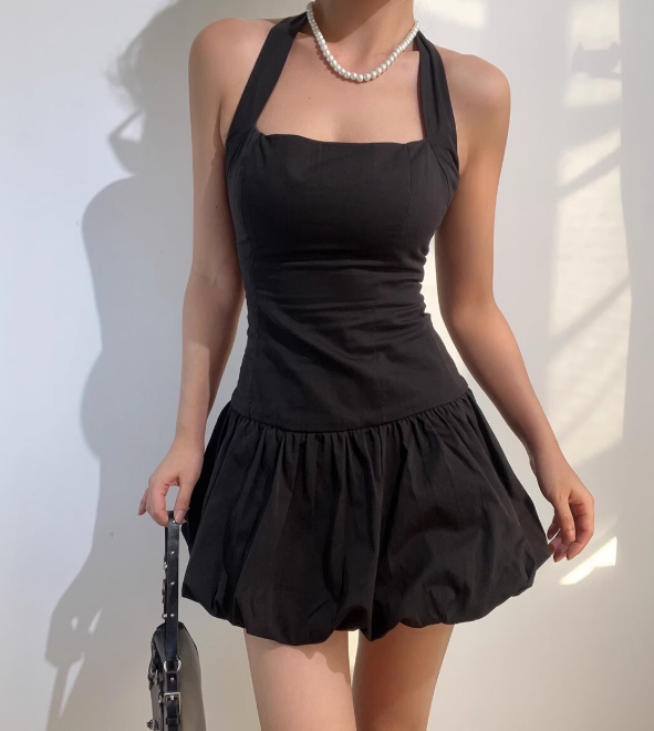 Robe courte plissée décontractée à col licou pour femme, tenue de soirée, d'été, D2039
