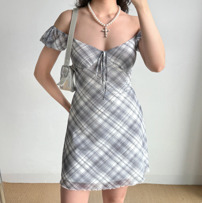 Robe d'été décontractée trapèze à carreaux, jupe courte, tenue de vacances, de bord de mer, pour femme, D2276