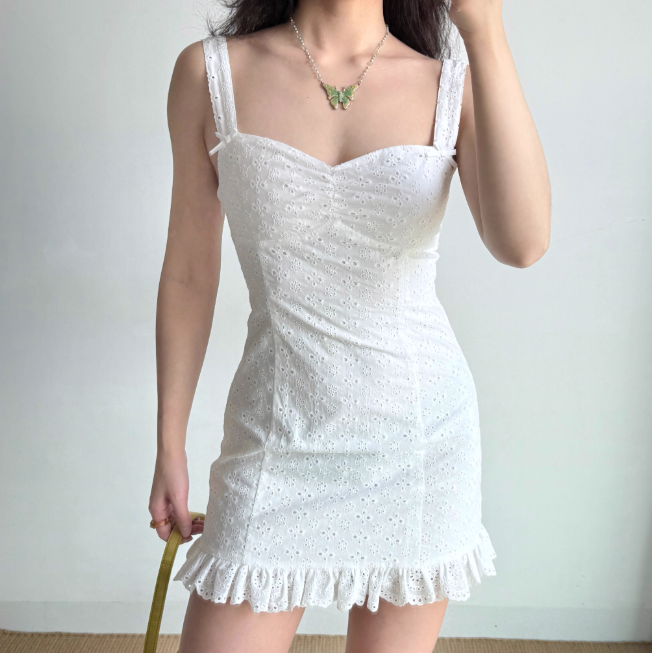 Robe d'été décontractée à bretelles spaghetti et jupe courte à volants pour femme et adolescente, tenue de rendez-vous, de vacances, D2331