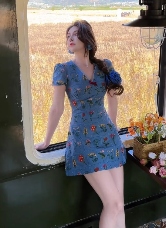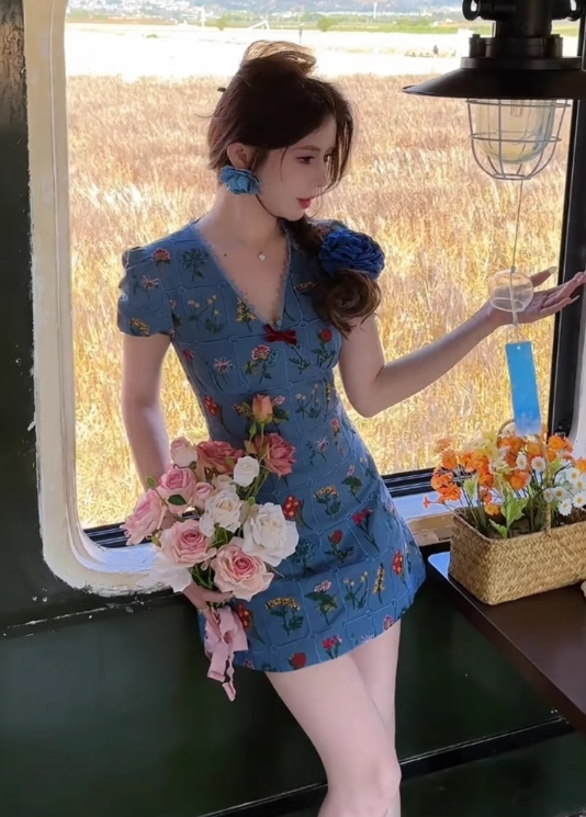 Robe d'été courte décontractée à col en V et imprimé floral pour femme, tenue de vacances en bord de mer D1966