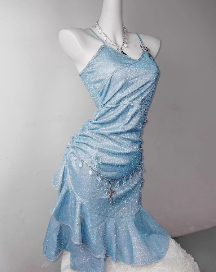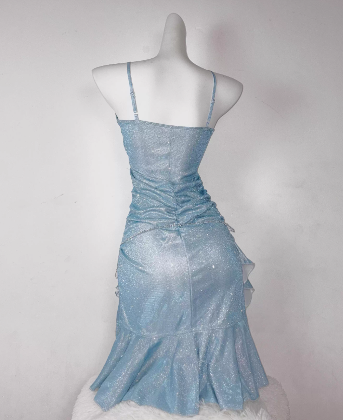 Charmante robe de soirée courte à bretelles spaghetti moulantes, robe de bal, robe de cocktail, robe sirène D2289