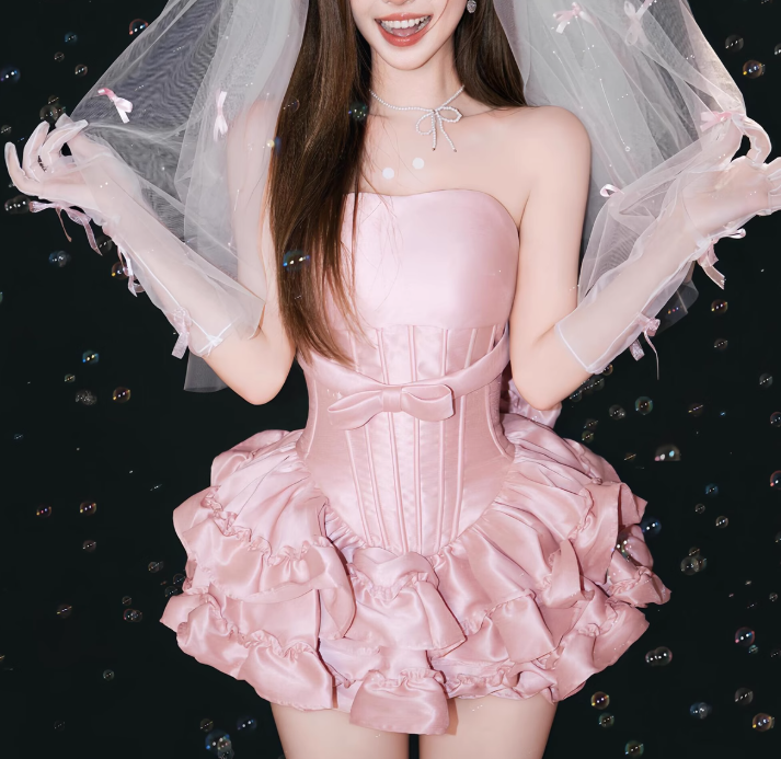 Charmante robe de bal courte rose sans bretelles à volants, tenue de rentrée scolaire, robe de soirée Sweet 16, robe de soirée D2200