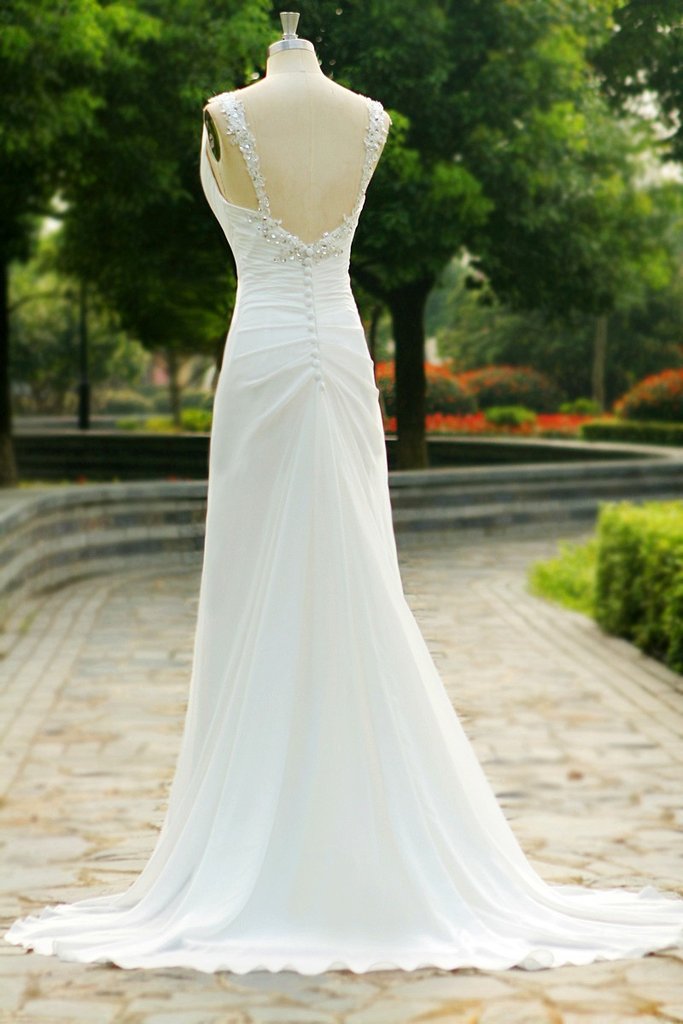 Charmante robe de mariée longue en mousseline de soie à col en V M1352