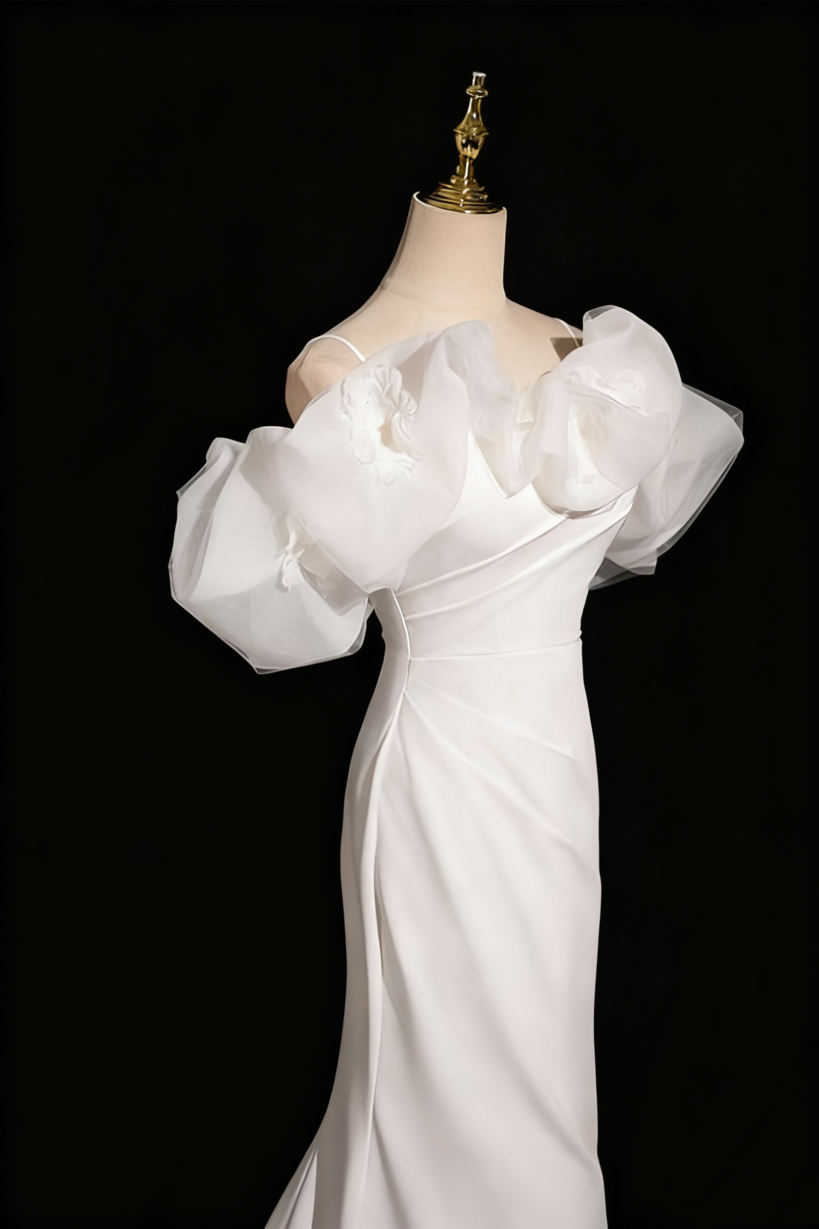 Charmante robe de mariée sirène plissée à volants et épaules dénudées D3292