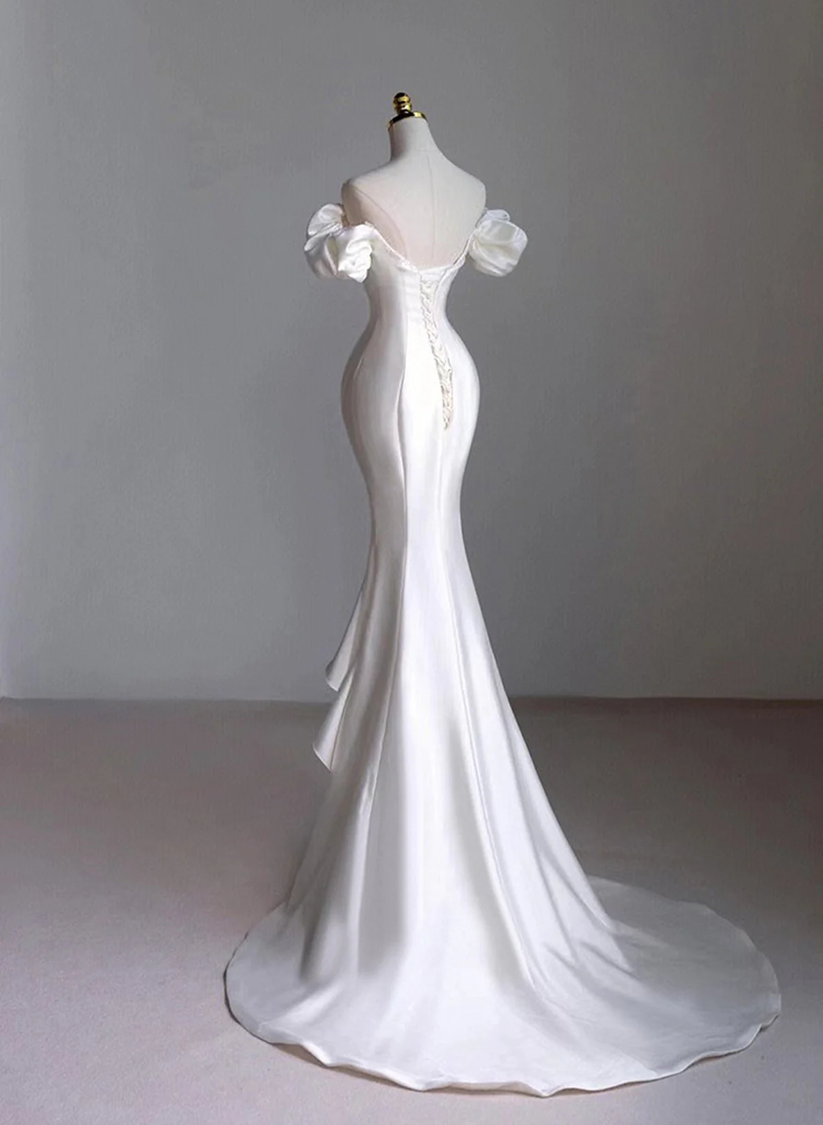 Robe de mariée sirène blanche chic en satin, décolleté en cœur, MD7210