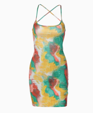 Robe fourreau courte dos nu à bretelles spaghetti colorées, robe d'été de bord de mer pour femme, robe de rendez-vous D1822