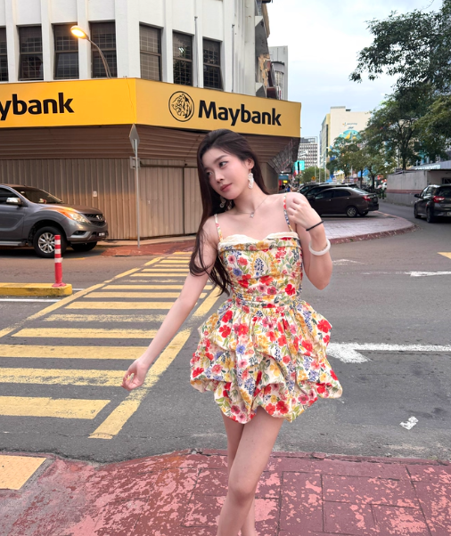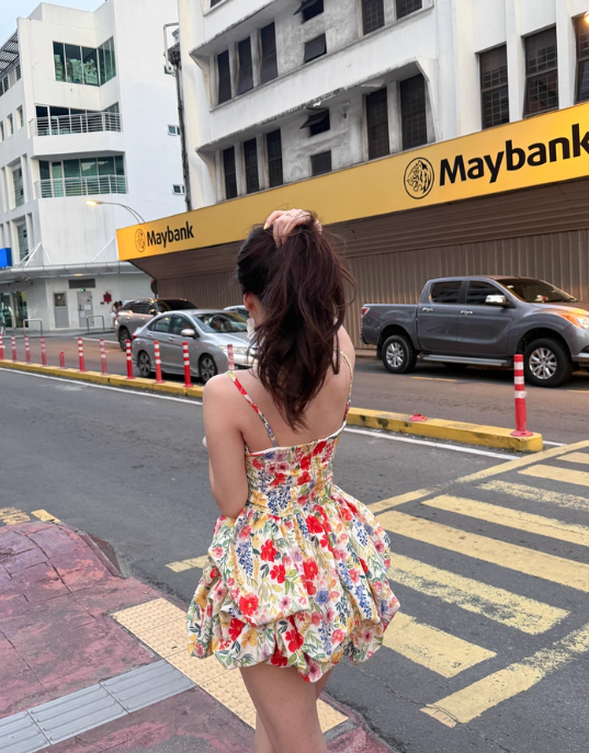 Jupe courte plissée à fleurs et bretelles spaghetti colorées pour femme, robe d'été D1909