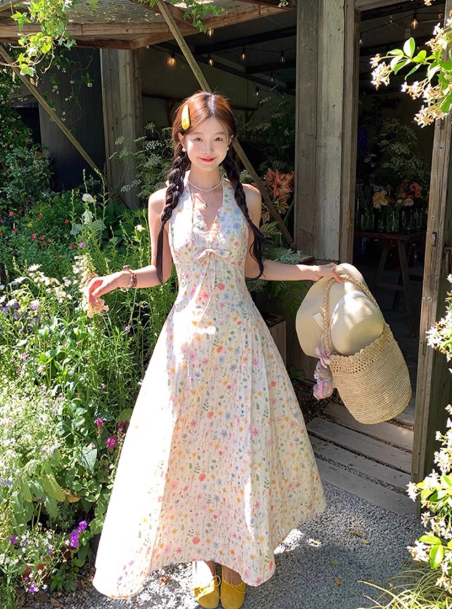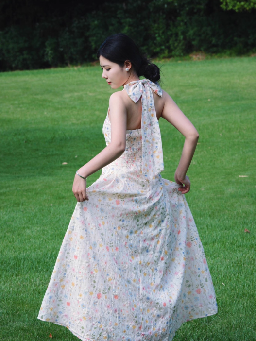 Robe longue à fleurs, coupe trapèze, dos nu, pour les vacances d'été, en bord de mer, pour femme, D1999