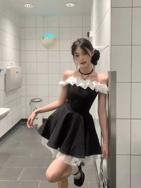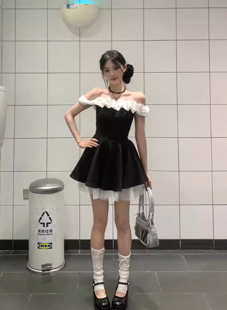 Robe d'été en tulle plissé à épaules dénudées pour femme, jolie jupe trapèze, D1928
