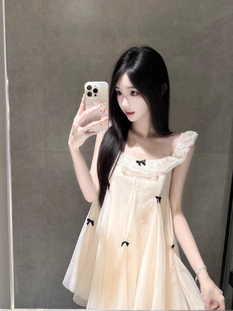 Jupe courte décontractée en dentelle à col ras du cou et nœud papillon pour femme, tenue d'été décontractée, D1936