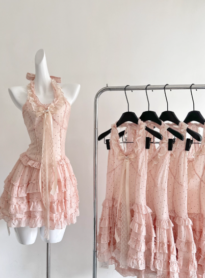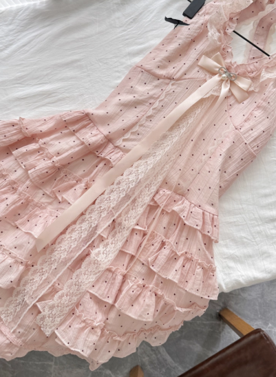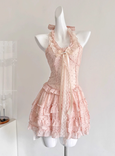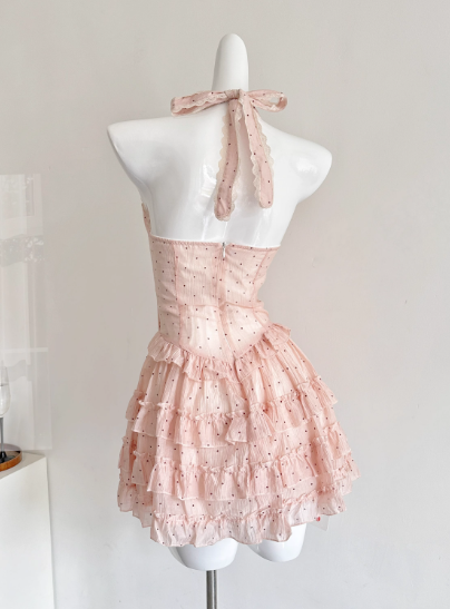 Robe de princesse d'été en tulle plissé à pois et dos nu pour femme, tenue de soirée D1902