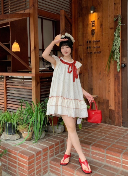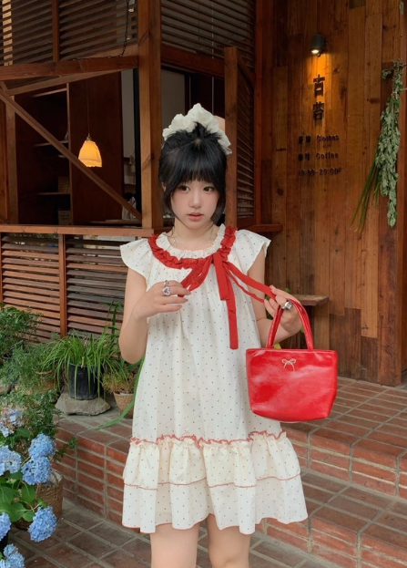 Robe courte plissée à volants et lacets à pois pour femme, jolie robe de soirée D1925