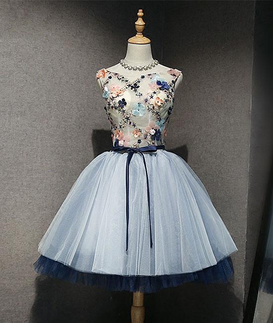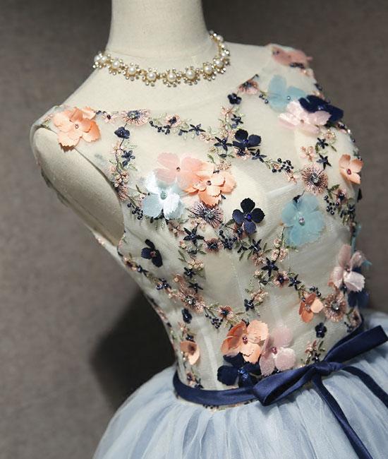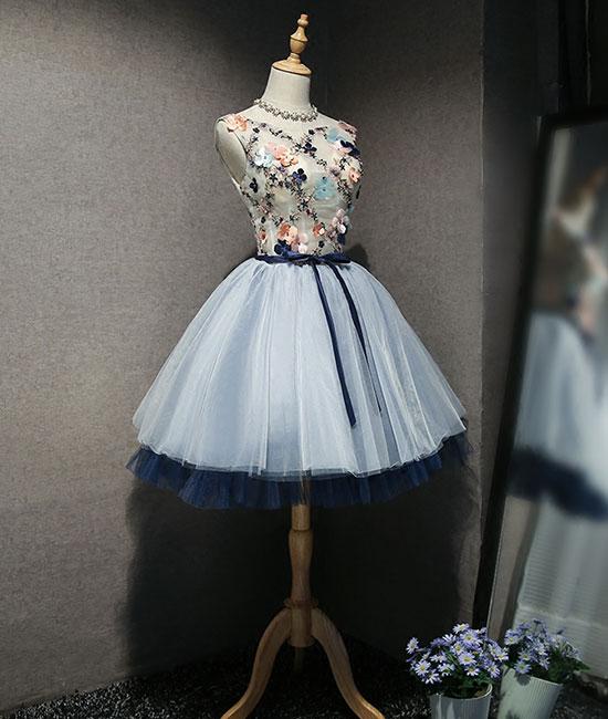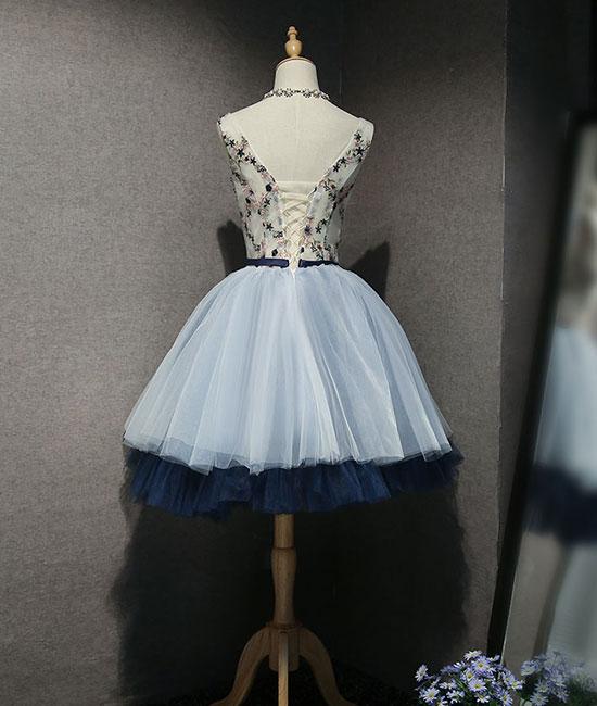 Jolie robe de bal courte en tulle à col rond, robe de soirée M4871