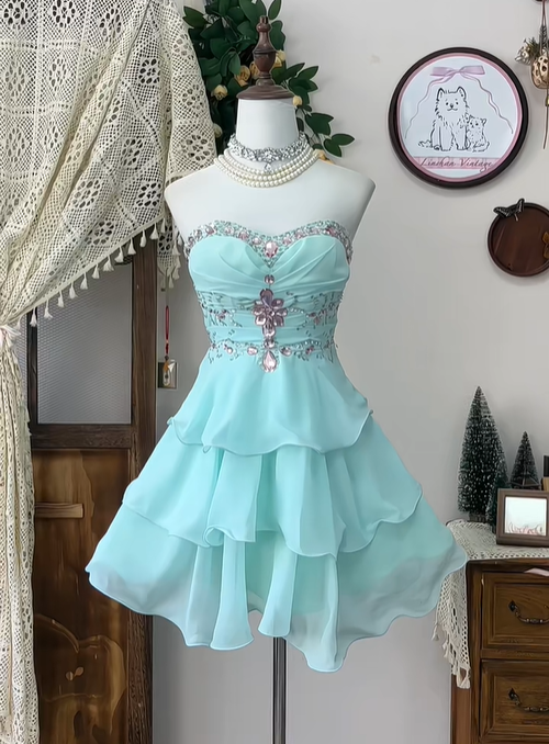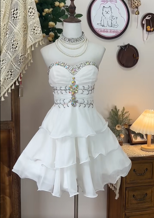 Robe de soirée mignonne sans manches, décolleté en cœur, volants superposés en cristaux Swarovski, robe de bal D1747