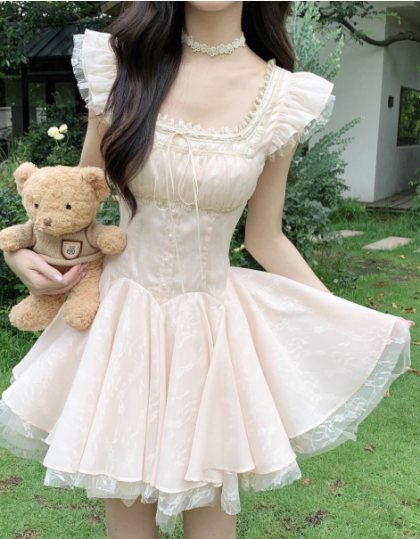 Robe de bal courte plissée à encolure carrée et à bulles, robe de soirée, robe de Quinceanera, D1758
