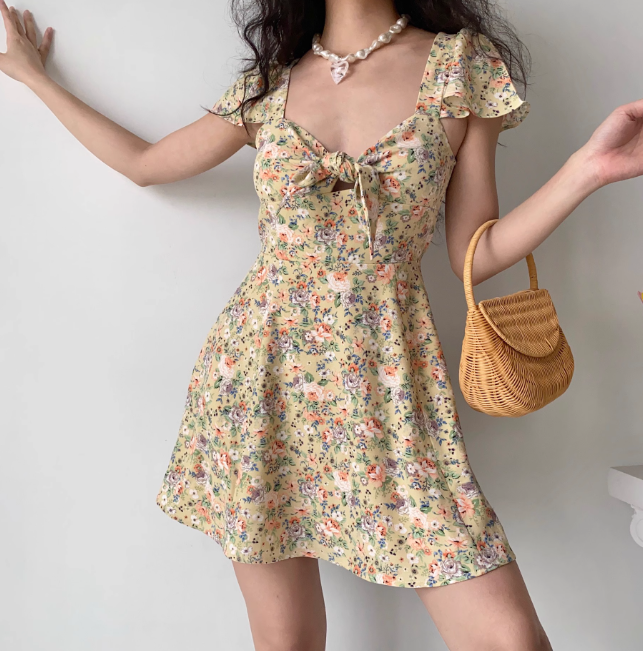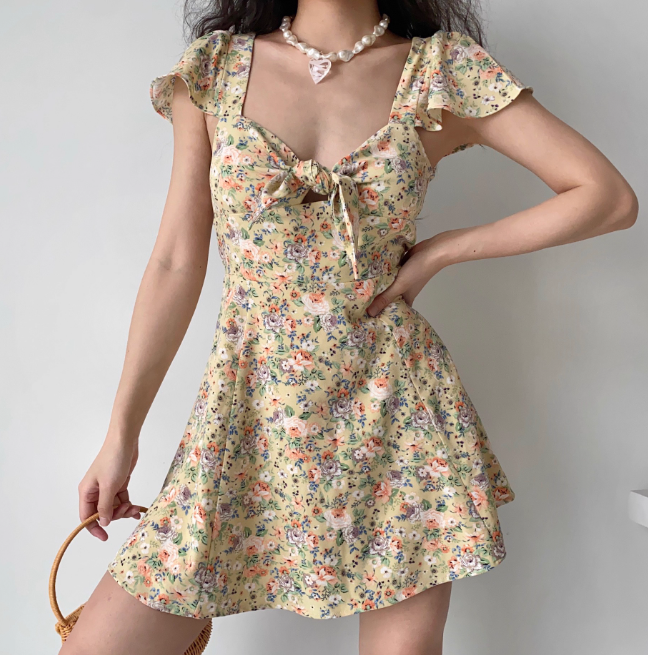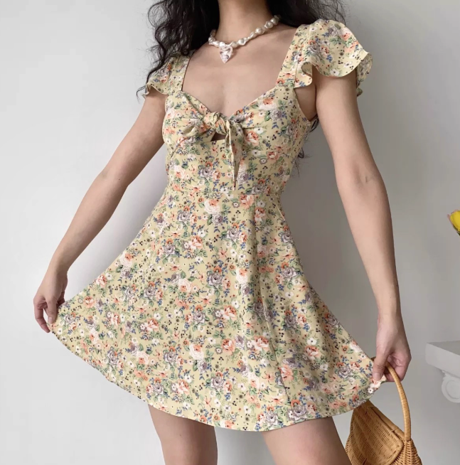 Robe d'été mignonne, coupe trapèze, à lacets, imprimée, jupe courte, pour femme, adolescente, tenue de vacances, D2267