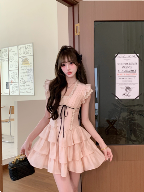 Robe courte à volants et col en V en dentelle pour fête de 16 ans, tenue d'anniversaire, robe de bal D1757