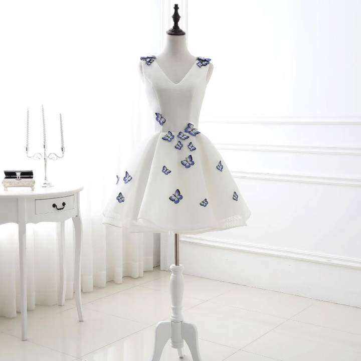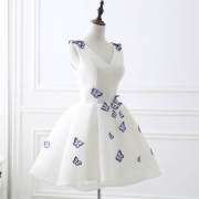 Jolie robe de soirée courte blanche à imprimé papillon M1005