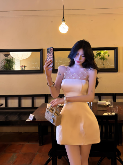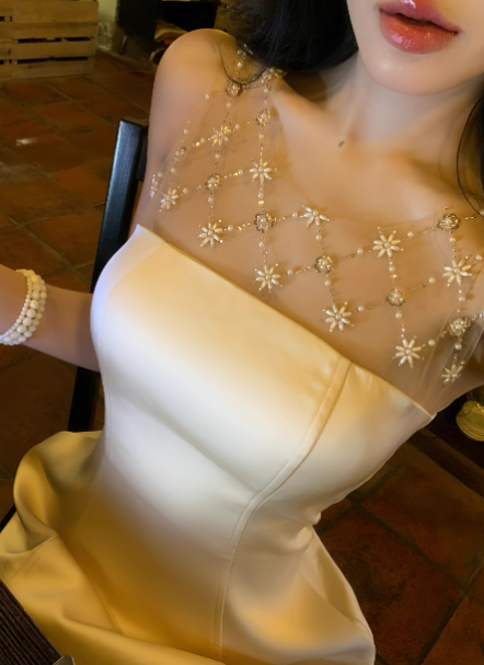 Robe trapèze élégante à col ras du cou et perles en tulle, courte, tenue de soirée, vacances d'été, bord de mer, D1952