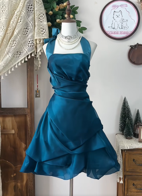 Robe de soirée élégante en satin extensible, col licou, sans manches, coupe trapèze, robe de bal D1753
