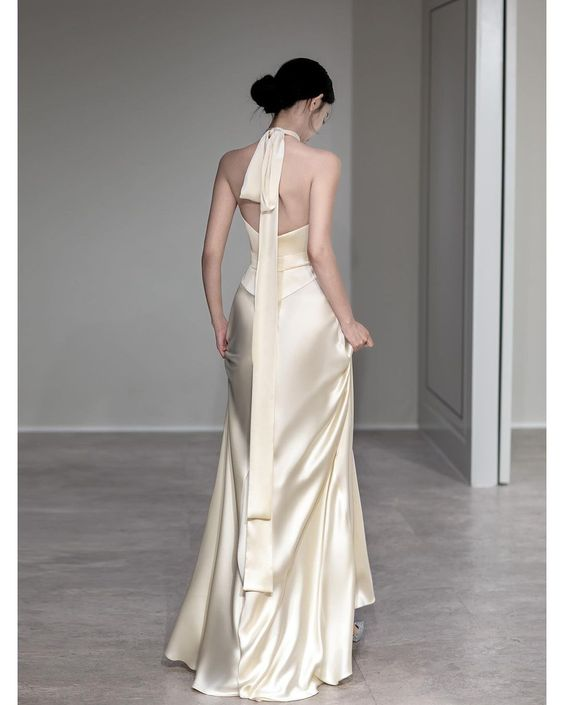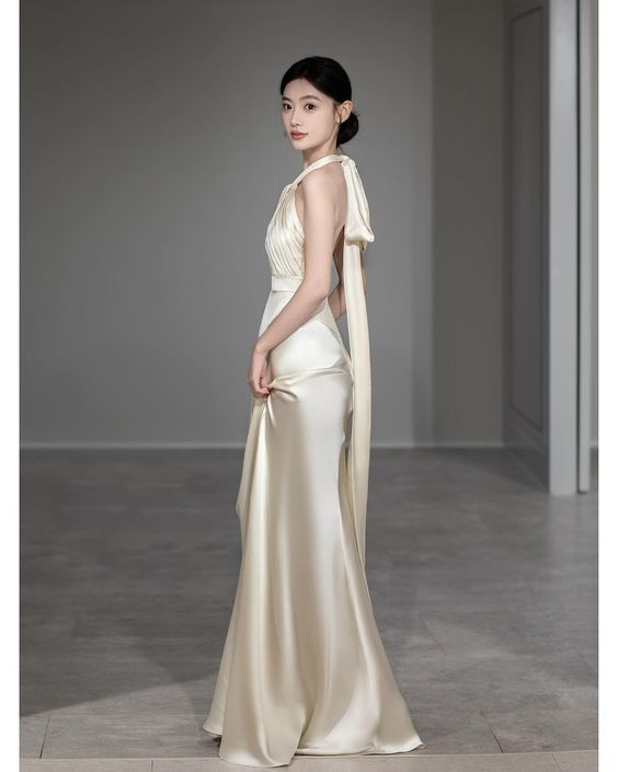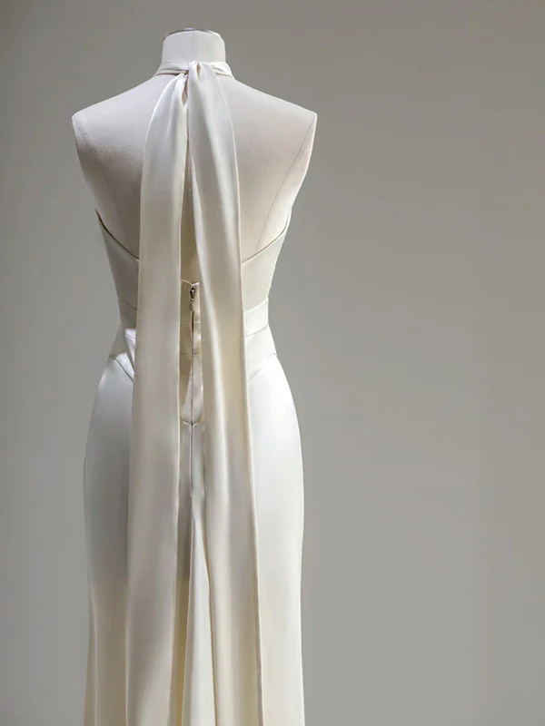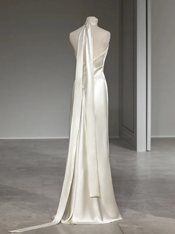 Robe de soirée sirène en satin ivoire élégante, décolleté en V, robe de réception de mariage MD7766