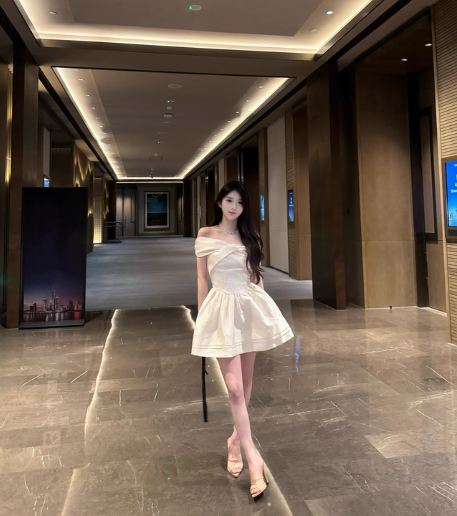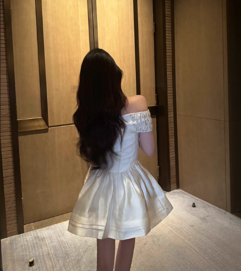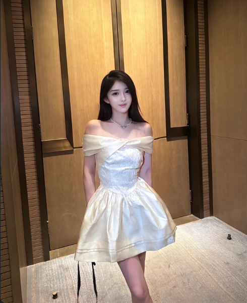 Robe trapèze élégante en satin et dentelle à une épaule, mini tenue d'anniversaire D1738