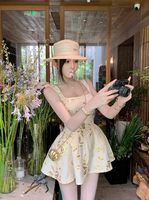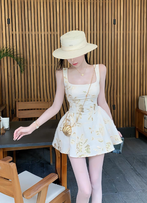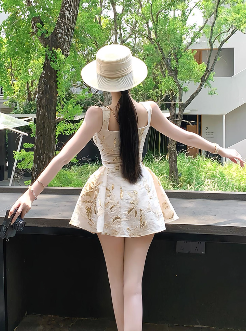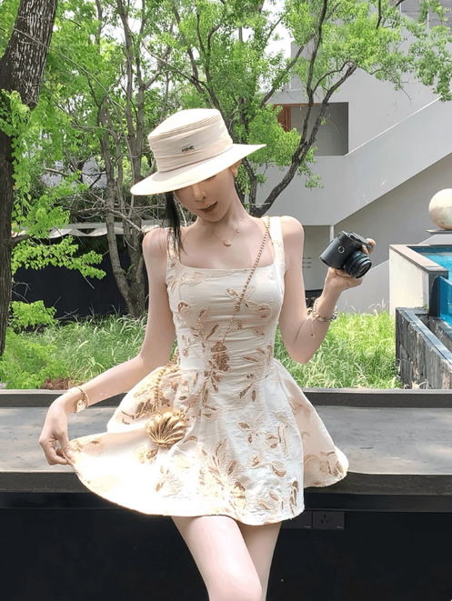 Robe courte plissée élégante à bretelles spaghetti et coupe trapèze pour femme, tenue de vacances décontractée et élégante, idéale pour un rendez-vous d'été, D1961