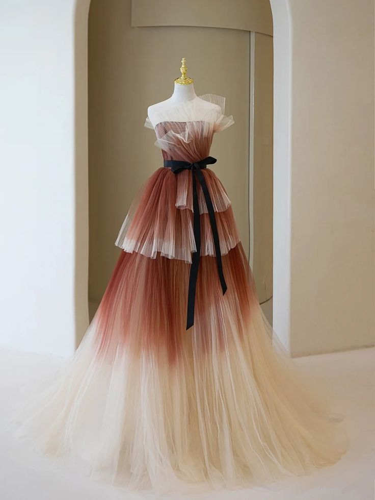 Robe de bal élégante, coupe trapèze, bustier, en tulle, longue, à volants, MD7519
