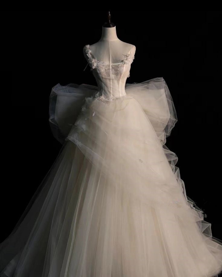 Robe de mariée élégante en tulle, coupe trapèze, avec bretelles et nœud papillon, MD7997