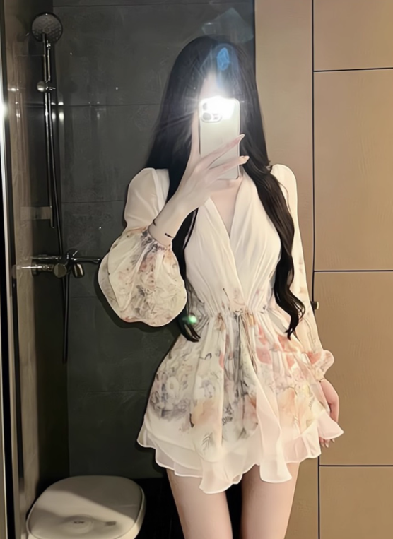 Robe d'été courte élégante à col en V et manches bouffantes et volants pour femme, tenue de soirée, D1973