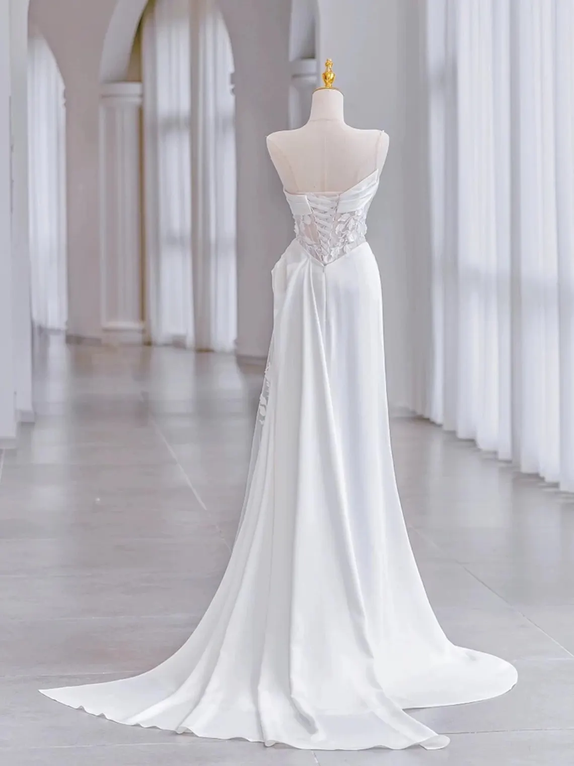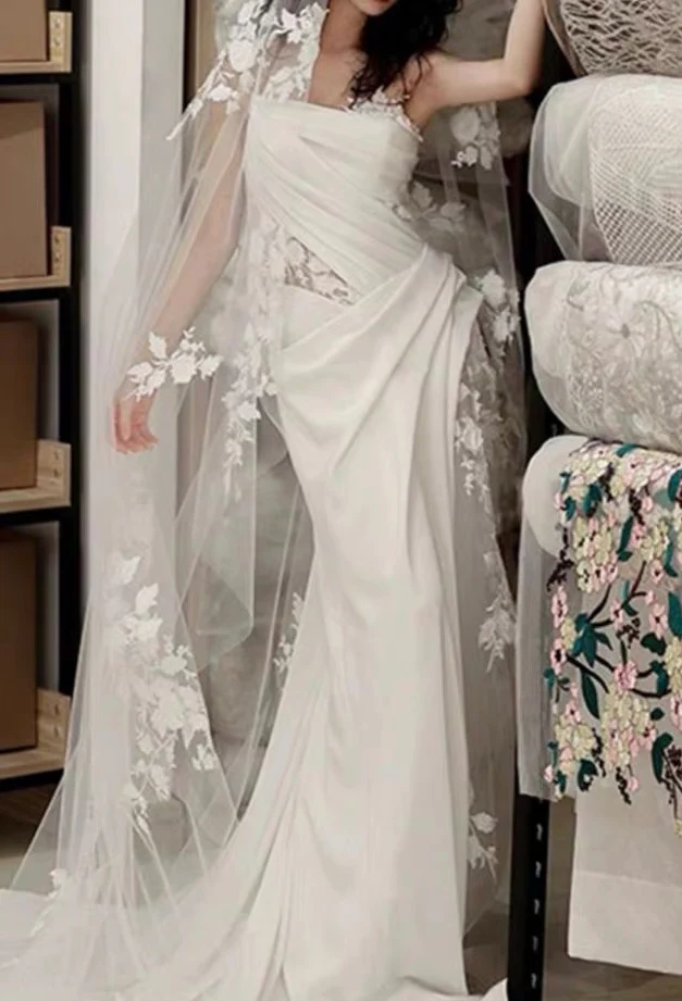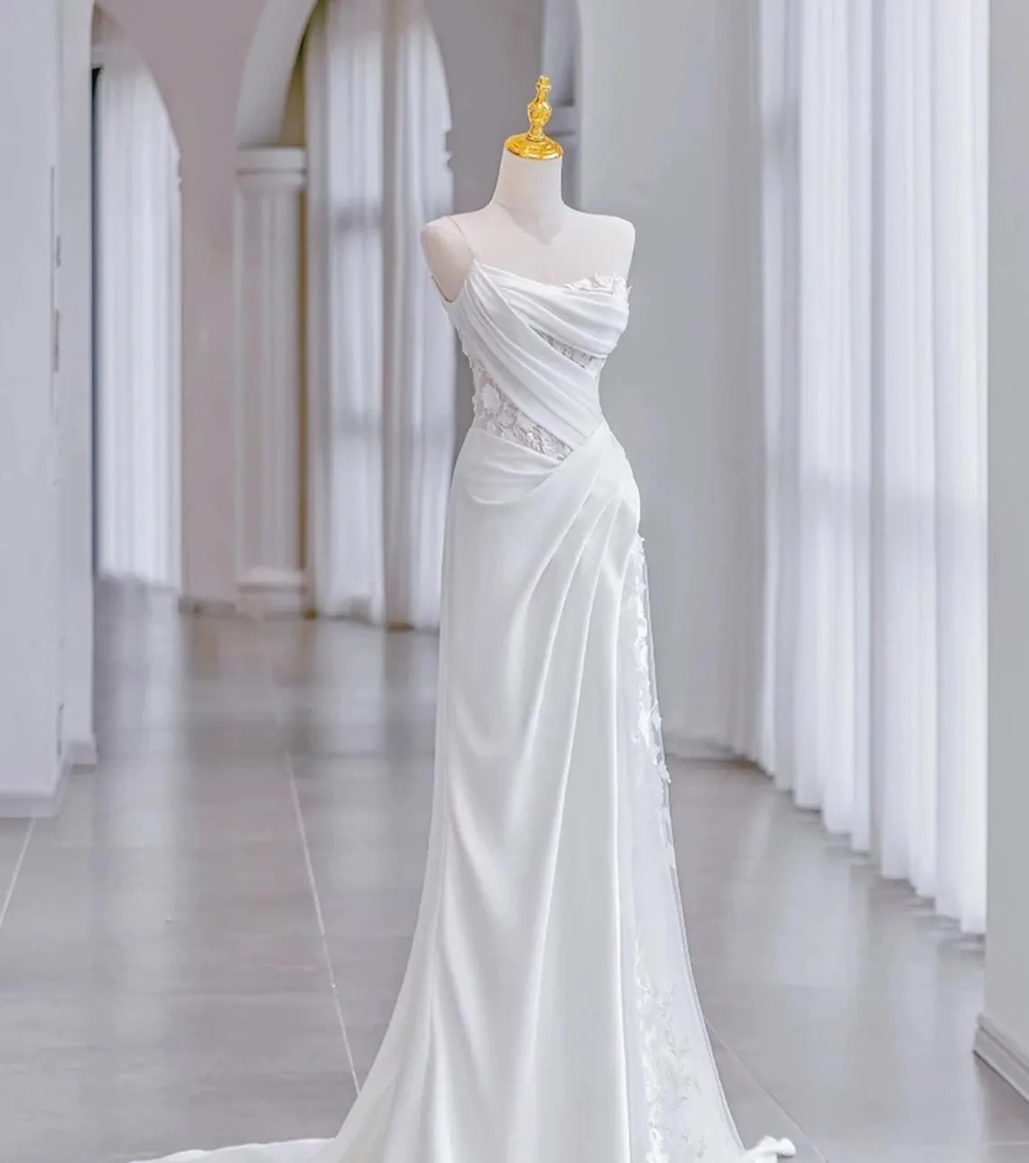 Robe de mariée trapèze élégante en dentelle blanche à bretelles, robe d'anniversaire MD7329