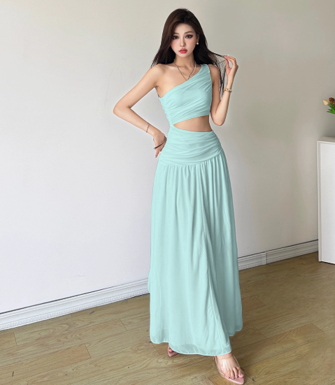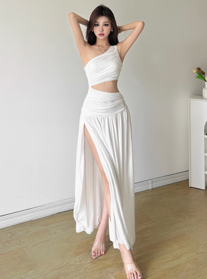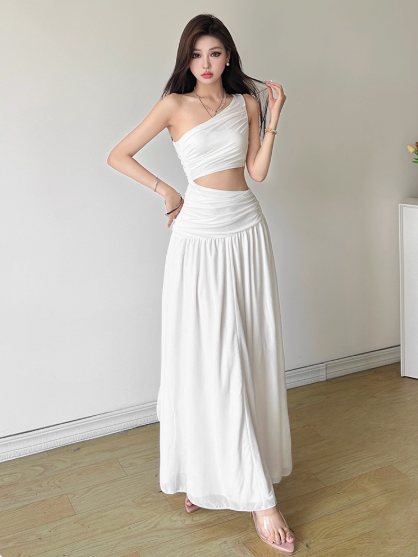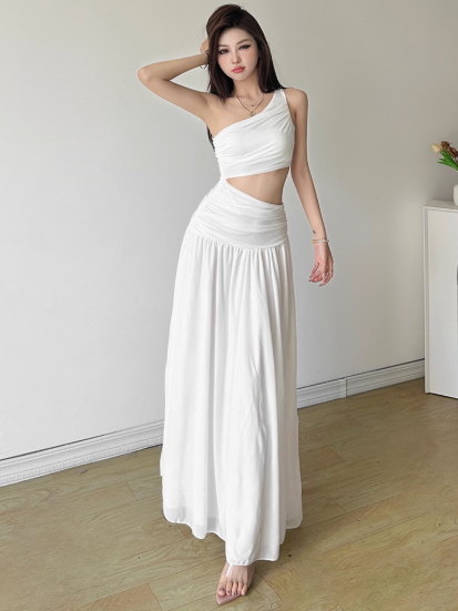 Robe longue plissée asymétrique à la mode pour les rendez-vous, les vacances d'été, pour femmes, D1830