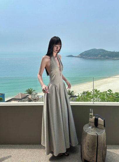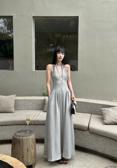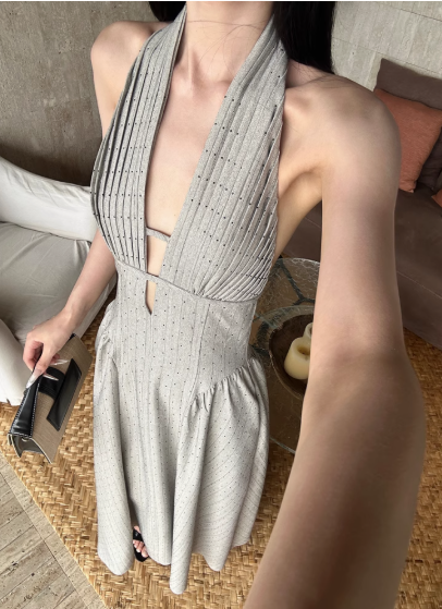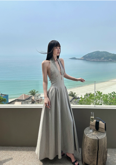 Robe longue plissée à pois et bretelles à la mode, col en V, dos nu, pour femme, tenue d'été pour rendez-vous, D1852