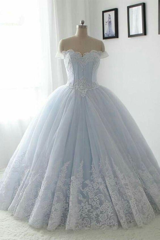 Robe de bal bouffante longue à épaules dénudées avec dentelle, robe de bal de Quinceanera M1568