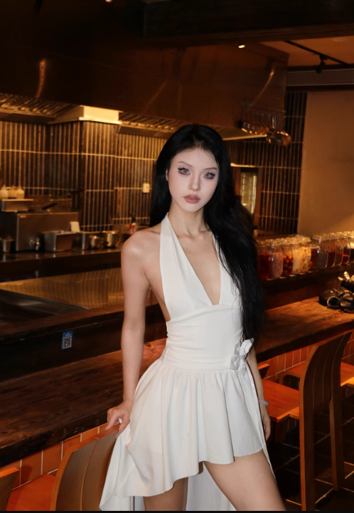 Robe d'été plissée à col en V et dos nu pour femme, tenue de vacances en bord de mer, D1882