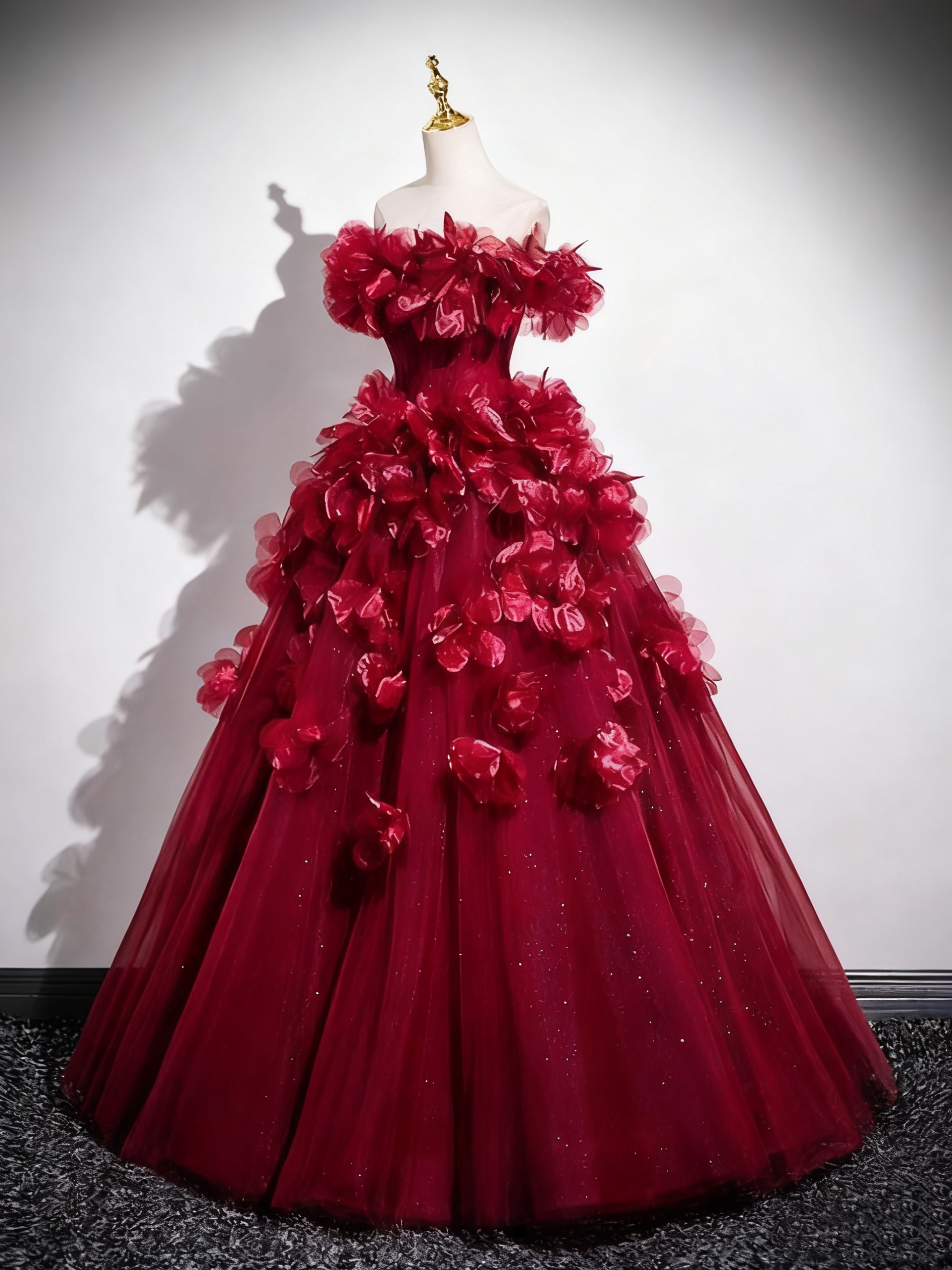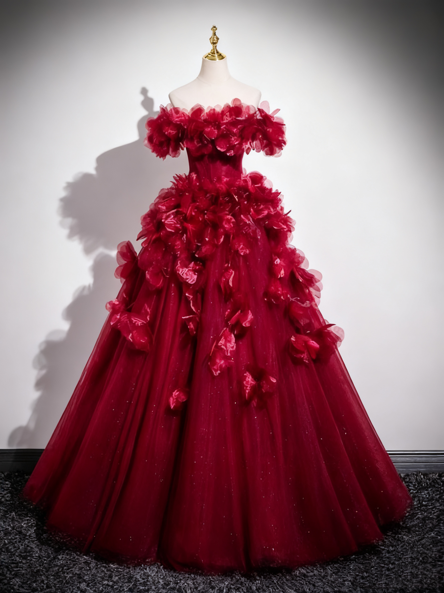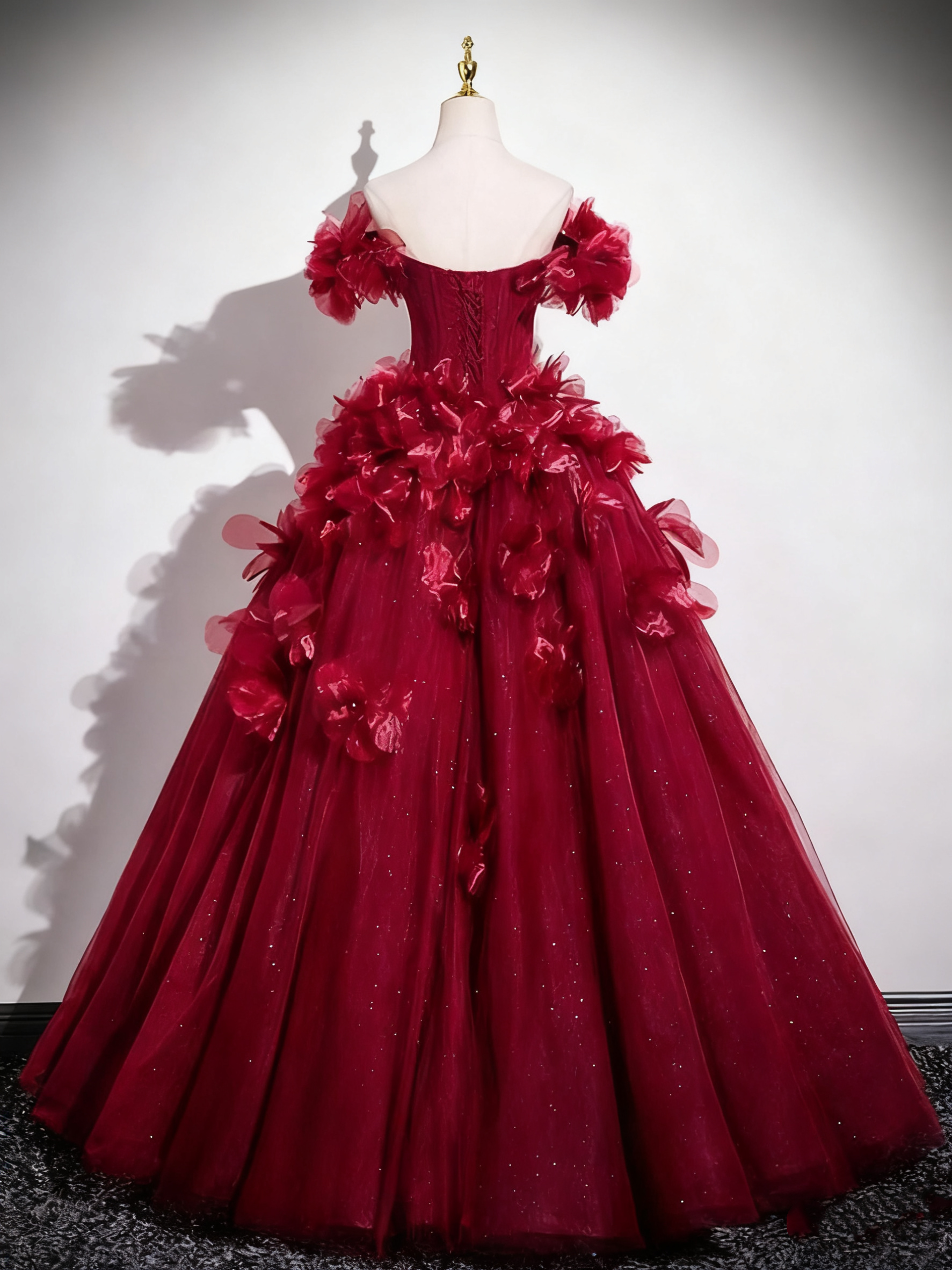 Superbe robe de bal à épaules dénudées et tulle plissé, robe de soirée Quinceanera D3370