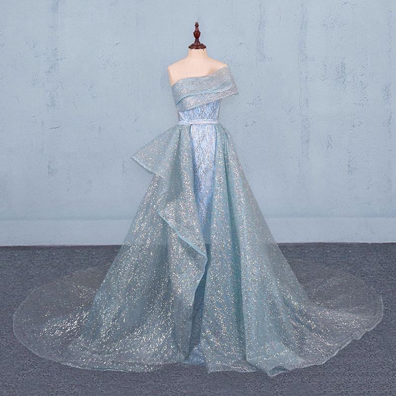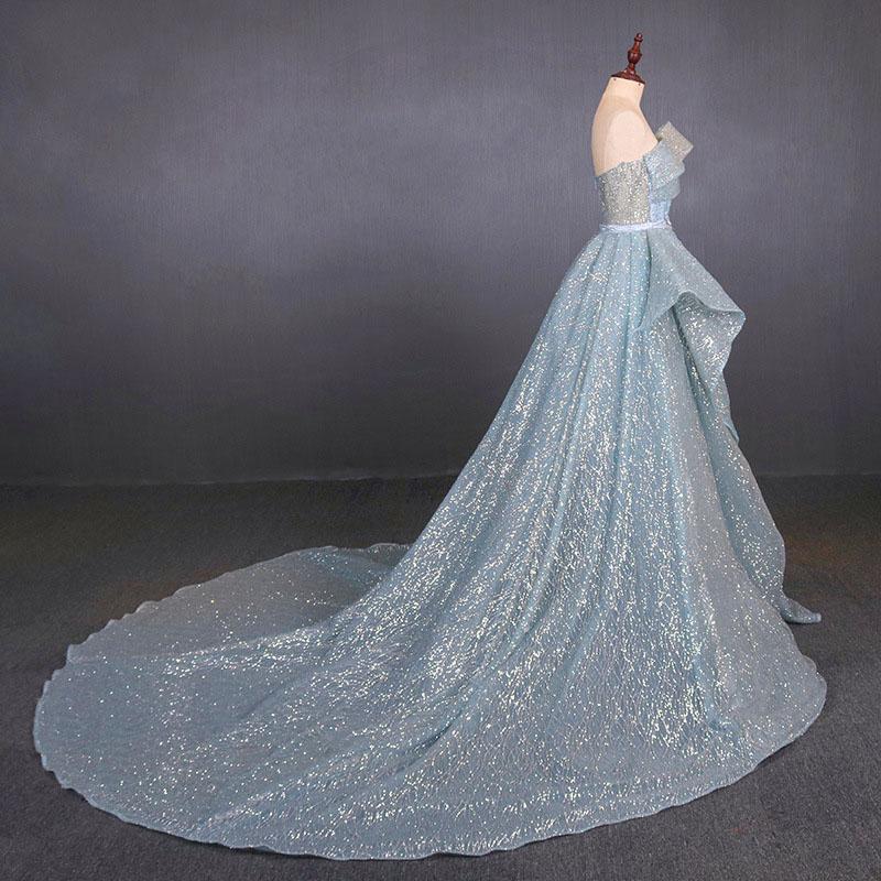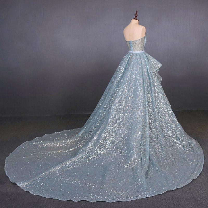 Superbe robe de bal bouffante bustier, robe de soirée fourreau pailletée avec traîne amovible M1851