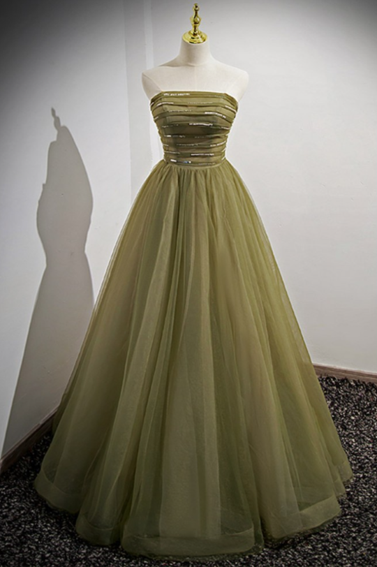 Robe de bal trapèze longue et modeste en tulle vert avec manches amovibles MD7306