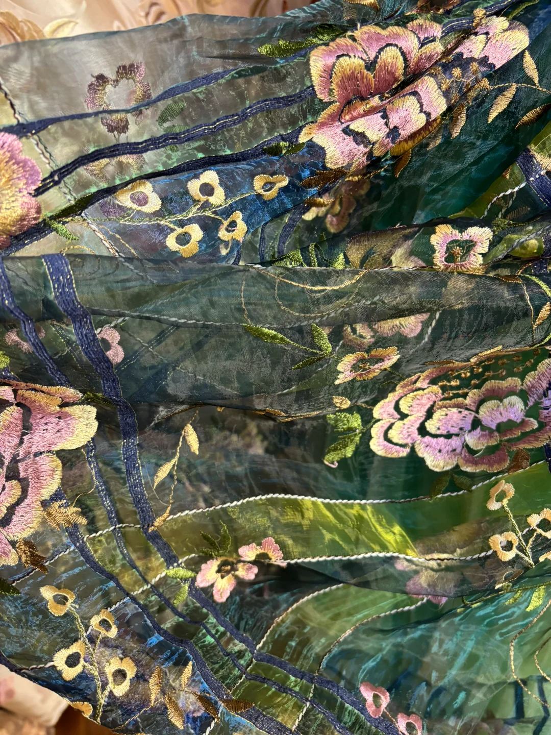 Robe de soirée longue verte en tulle brodé, épaules dénudées, coupe trapèze, robe de bal d'anniversaire, D835