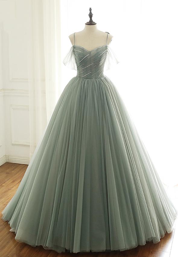 Robe de bal longue en tulle vert M47