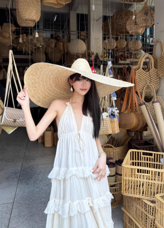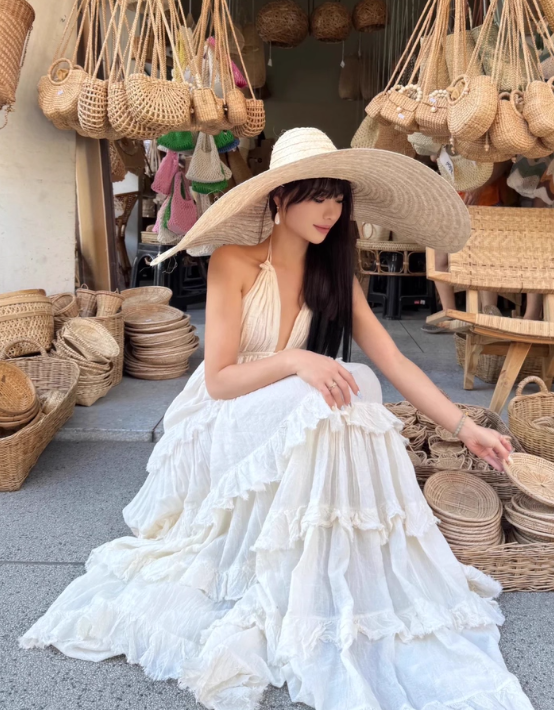 Robe longue d'été plissée à volants et dos nu pour femme, tenue de plage, de vacances, de style islandais, D1861